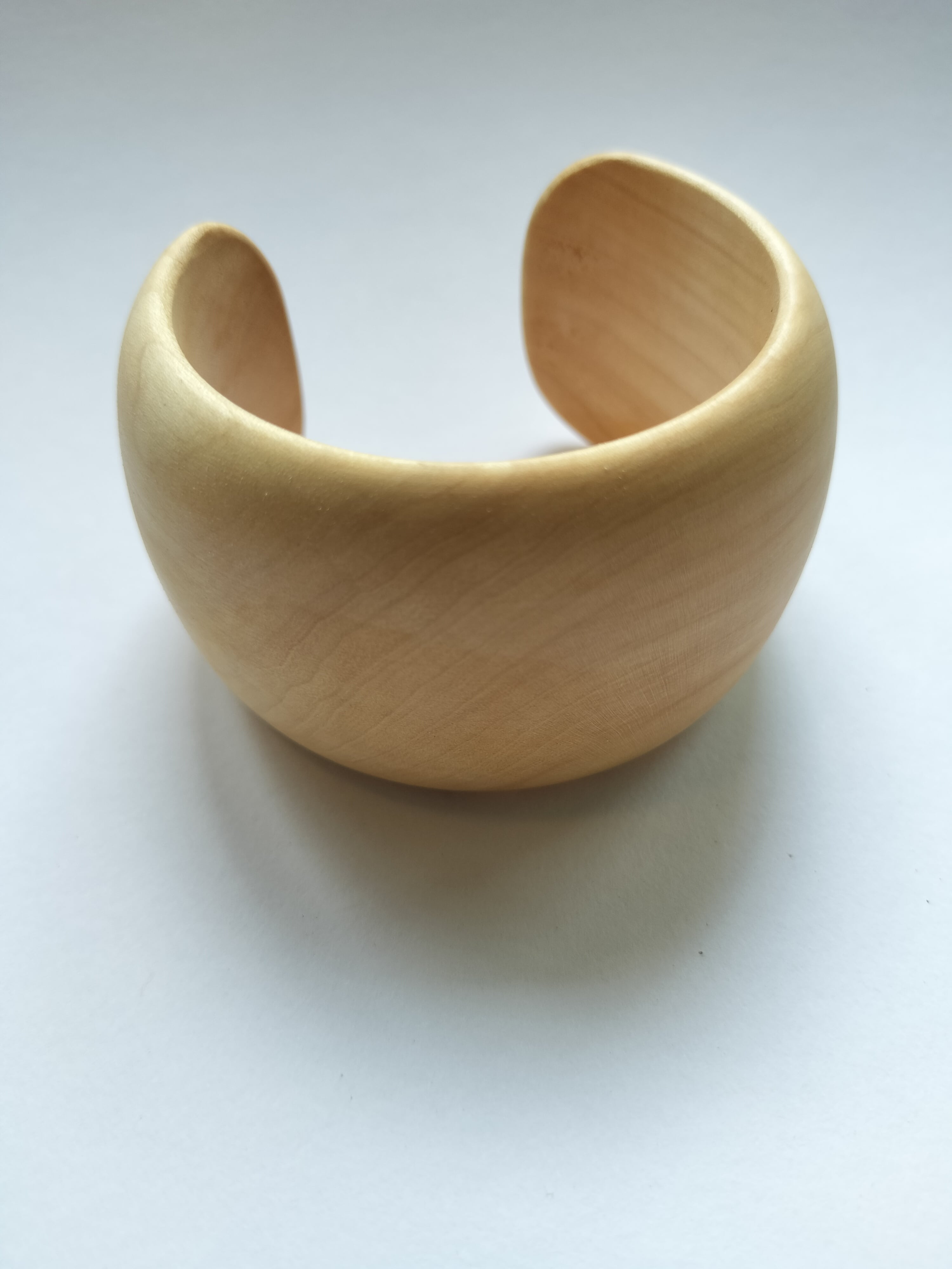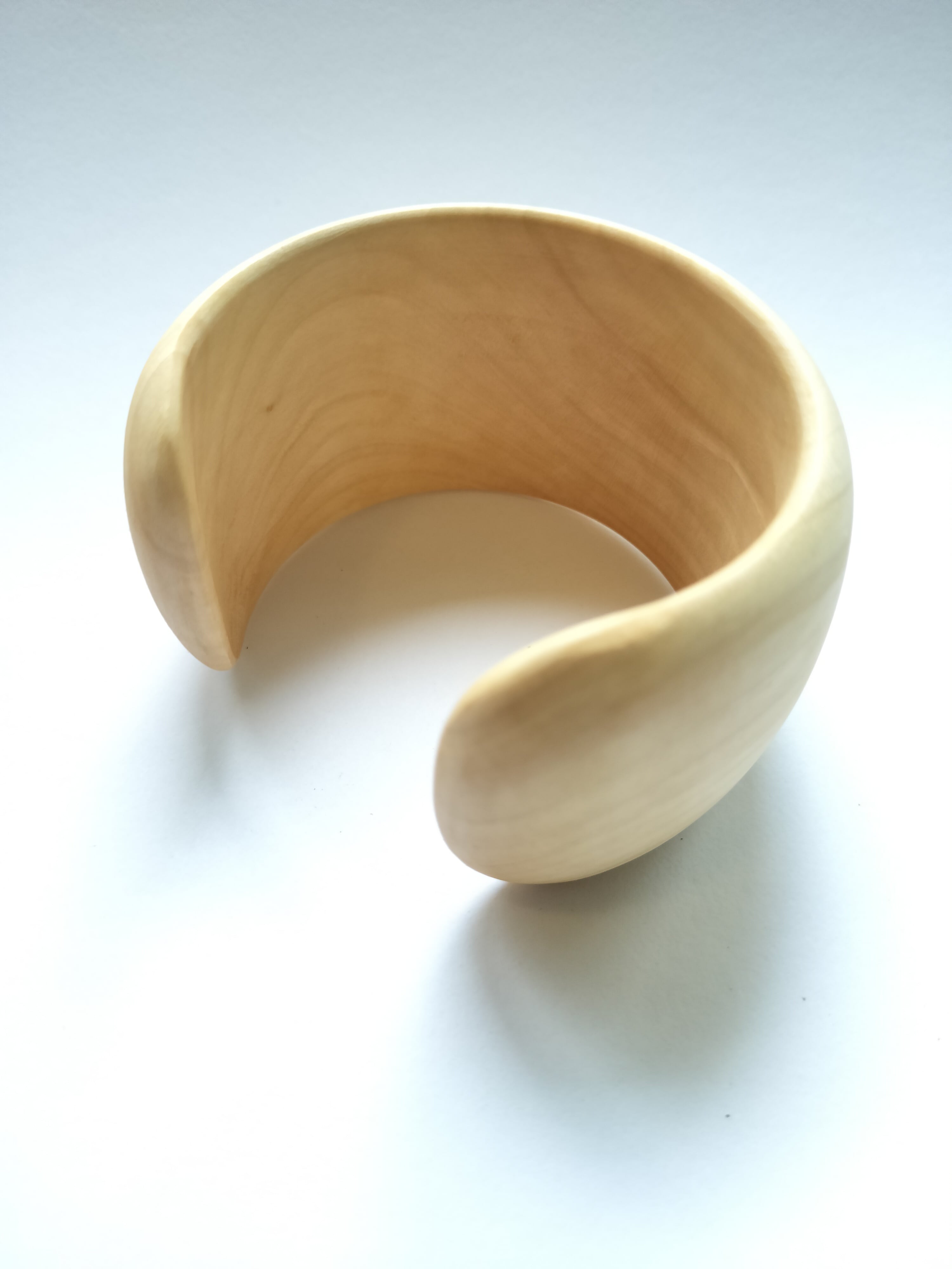 木目はあまり目立たず、白いきめ細かい木肌の美しいバングルです。