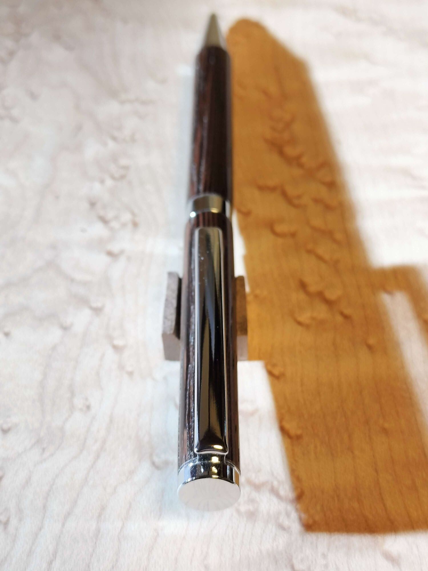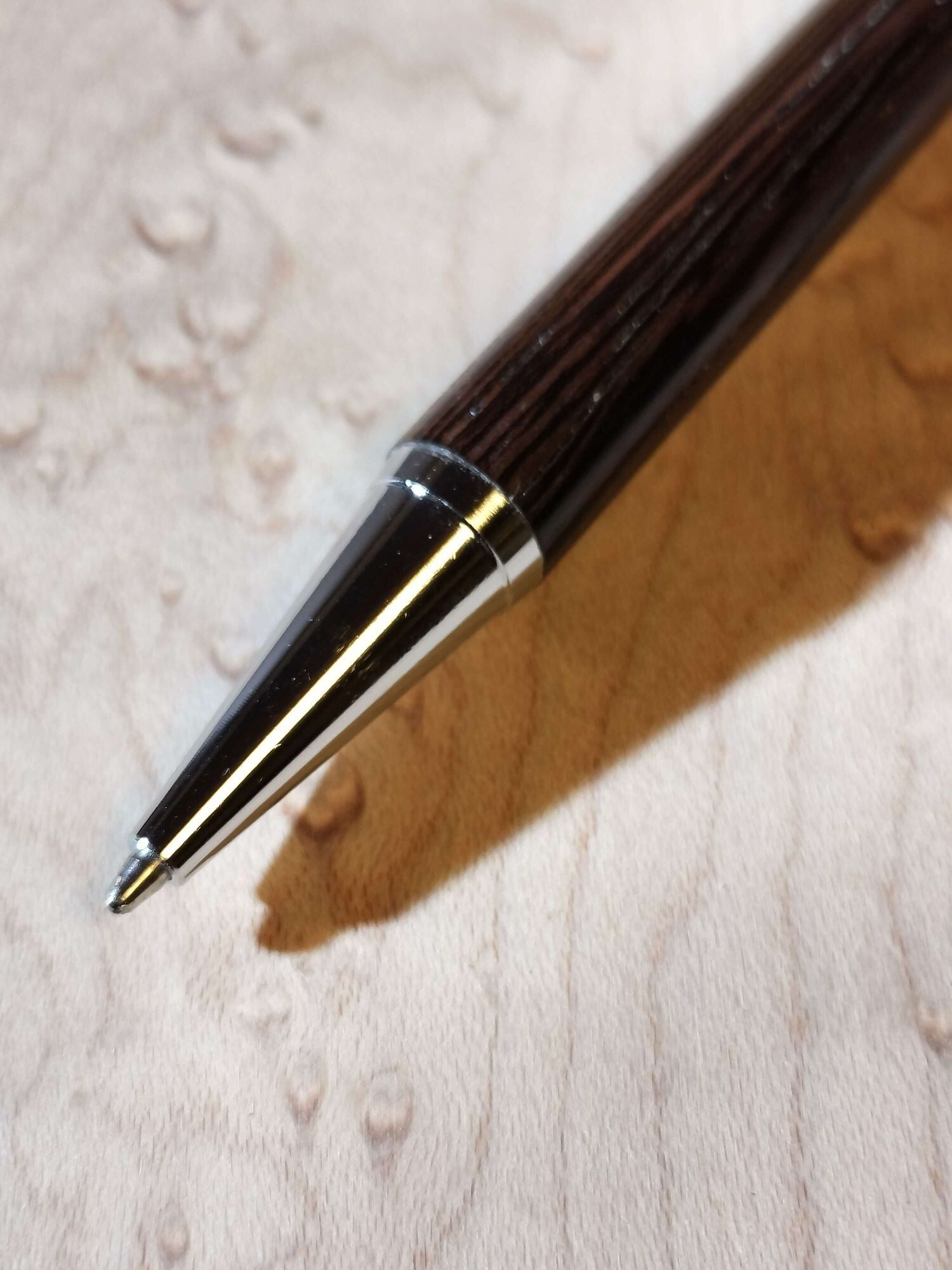 アフリカ産の高級銘木「ウエンジ」を使用し、一本ずつ丁寧に削り出したハンドメイドの木軸ボールペンです。