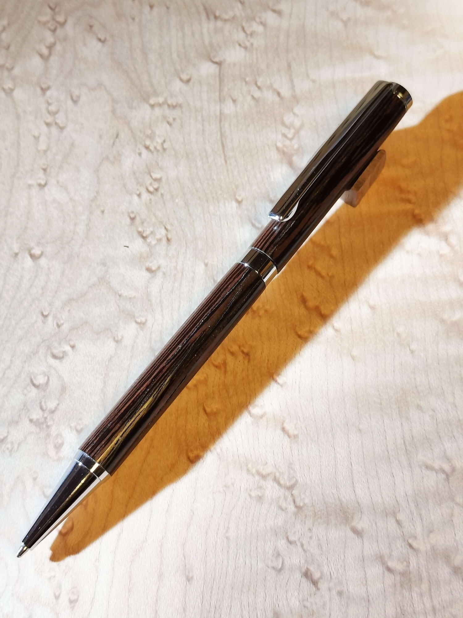 ウエンジのシンプルな木軸ボールペン /スリムタイプ・クローム金具